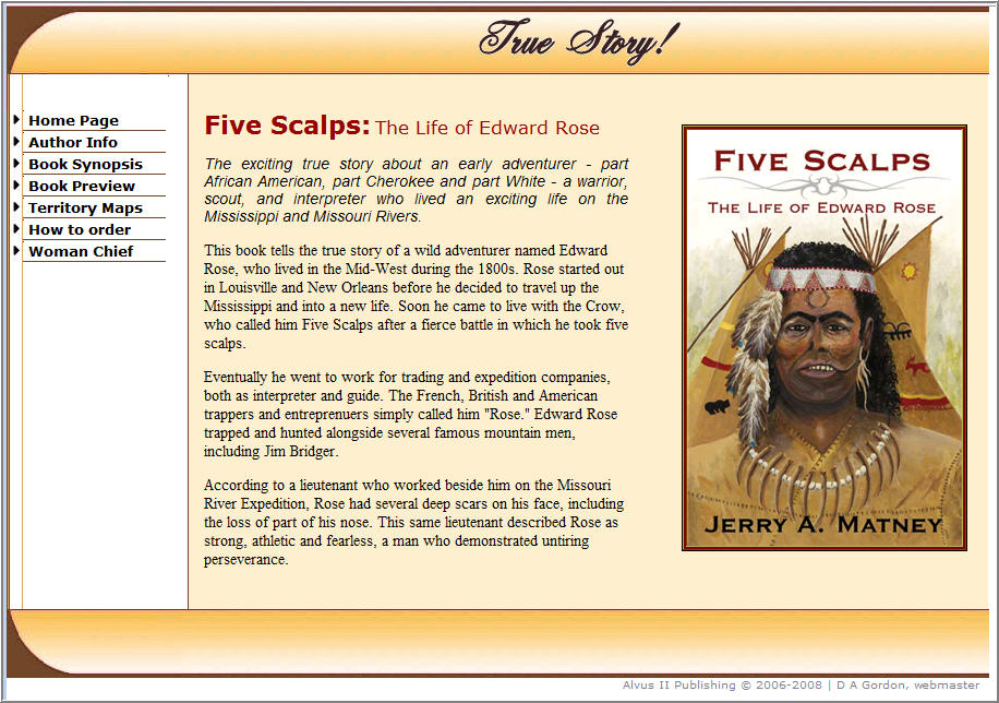 Five Scalps Built to promote Five Scalps, the companion historical novel to Woman War Chief. I edited this book and helped with publication. http://www.fivescalps.com/